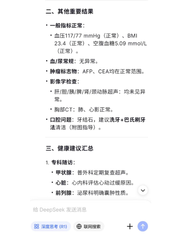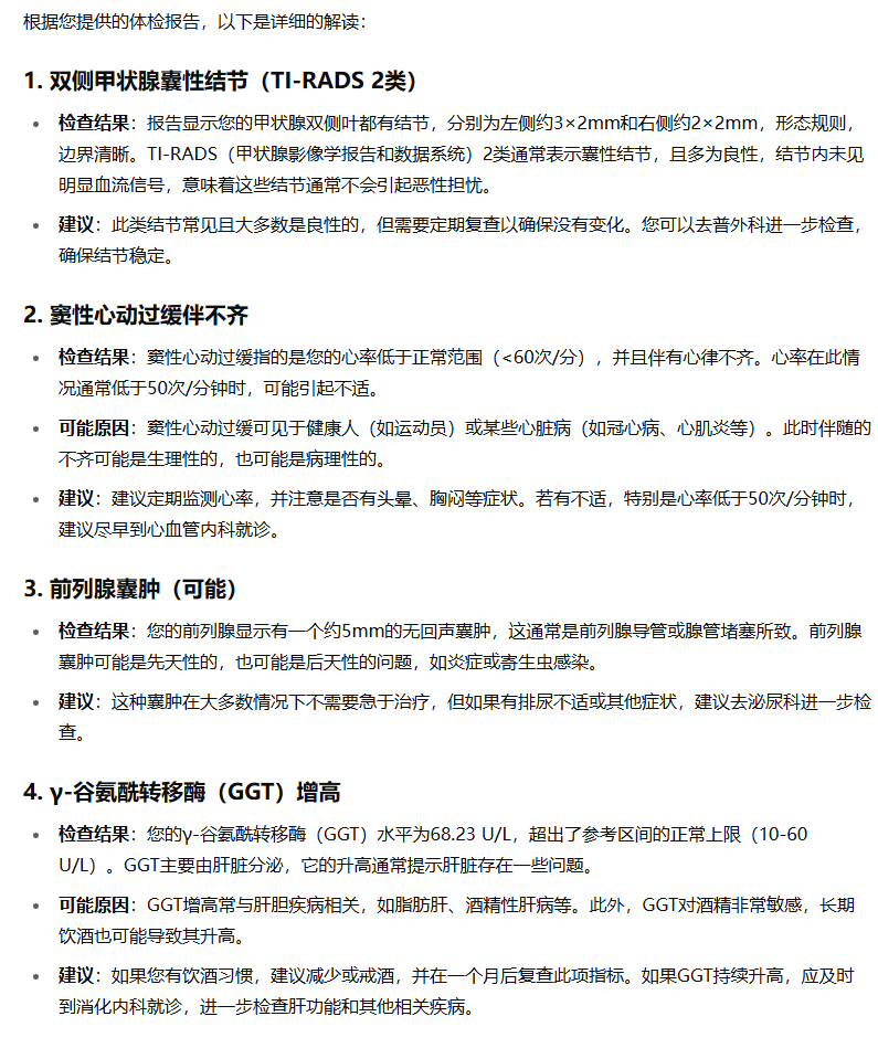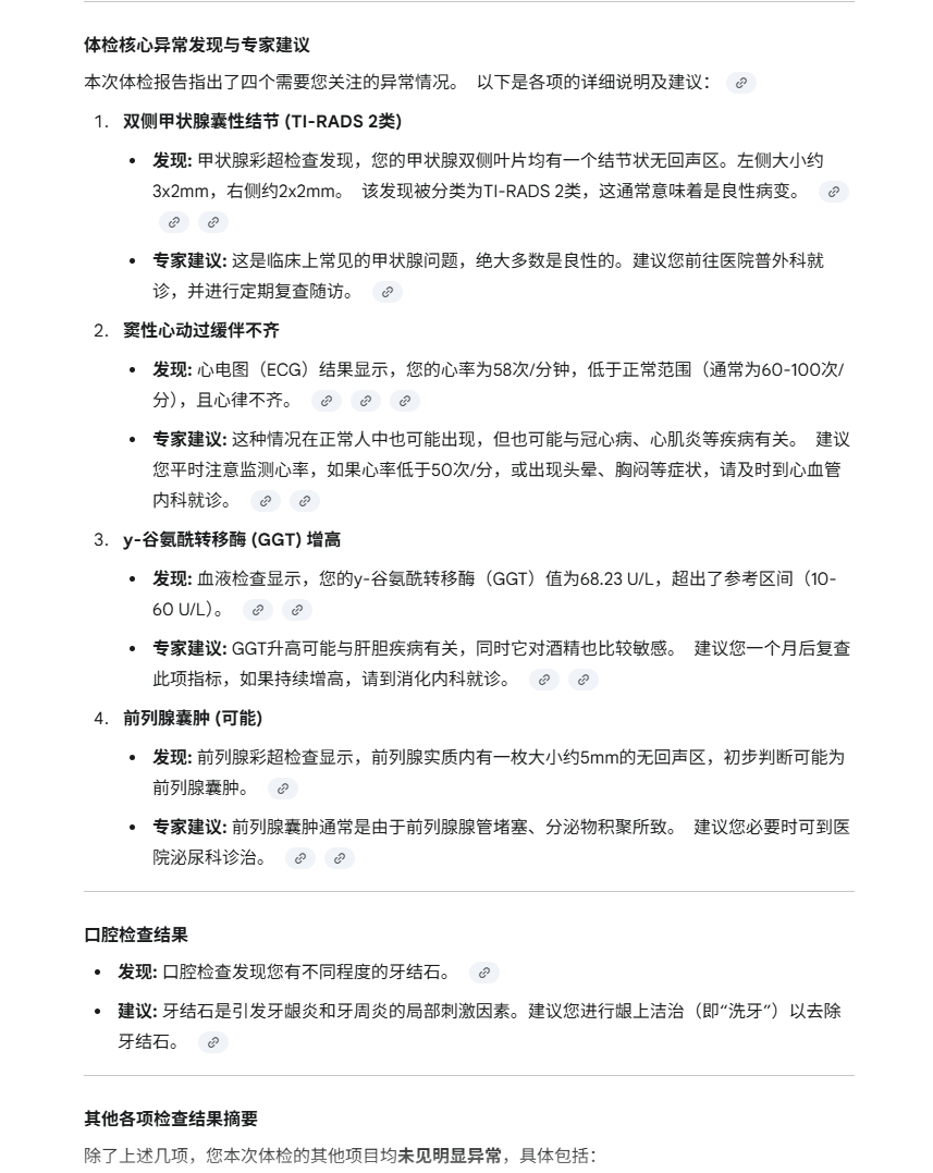就拿解读体检报告来说吧,首先扑面而来的,就是那股子AI味儿。里面的专业术语,是觉得我小学二年级就学过吗。。