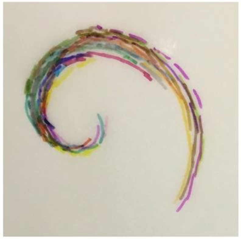 而 2016 年的一篇论文更是直接复现了组织扩张作用于皮肤时产生的剪切力曲线[3]。研究者将皮肤扩张器埋置于猪皮下,记录了快速扩张后皮肤组织发生的形变,得到了近乎标准的黄金螺旋曲线(见下图)。这一结果无疑为发旋形成的力学假说提供了生动形象的理论支持。