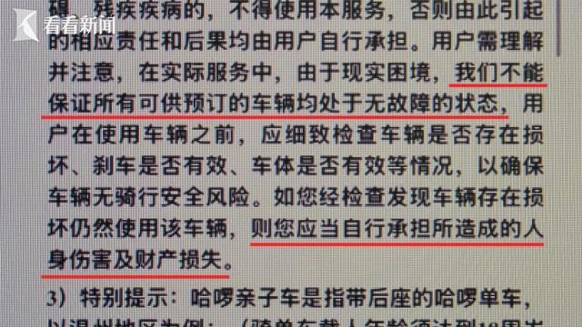 如果有人试图走法律途径,则会被要求自行举证。后台数据都掌握平台手中,即使有技术缺陷,平台也能悄然打上补丁,个体消费者要维权谈何容易?而仔细阅读平台服务协议还会发现,有的条款里会写明:平台不能实时保证车辆均处于无故障的状态,如发生意外或伤害事故,用户应自行承担相应责任。也就是说,一旦出了事,锅都是消费者自己背。