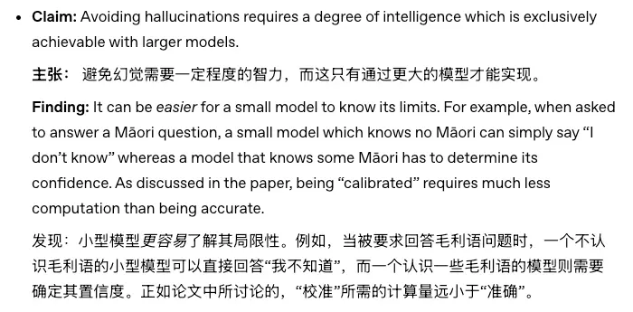 因为很多知识小模型可能根本没学过,所以人家反而会干脆利落的承认我不会,但是大模型因为啥都学会了一点,所以面对一些题目的时候可能就会很自信的 A 上去了 。