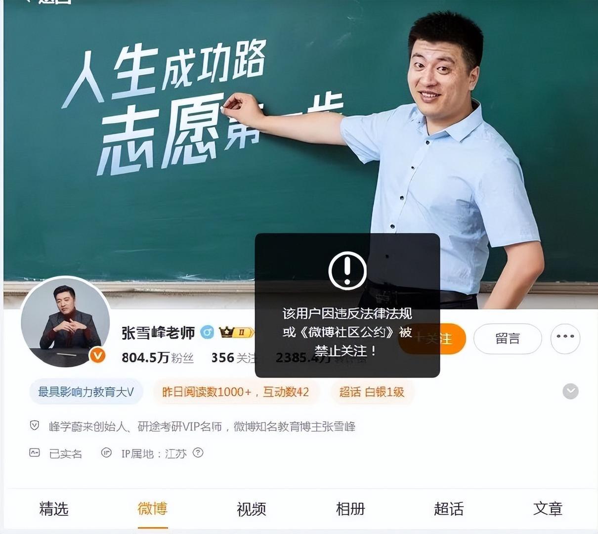 9月24日,张雪峰在多平台的主账号被禁止关注。各平台标注的原因颇为一致:“违反法律法规或社区公约”。这一消息迅速引爆网络,不少网友直呼“大快人心”。这位曾以“七分钟解读34所985高校”走红的高考志愿规划师,如今走到了职业生涯的转折点。