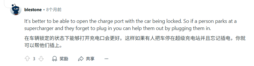 所以咱还是希望特斯拉能用一次简单的升级,早日推出一个兼顾便捷与安全的充电盖开启方案。