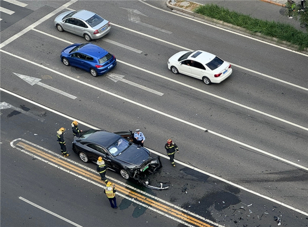 有目击者称,当时这辆闪灵从北向南撞上了一辆白色车,由于速度快,白车被撞飞好几个车道后撞到了绿化带上,车内人员受伤情况未知。