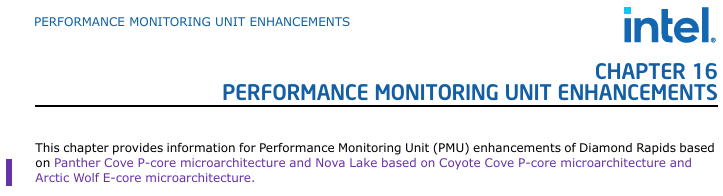 根据Intel最新发布的第59版ISA扩展参考手册,其下一代Nova Lake客户端处理器和Diamond Rapids服务器处理器的核心架构已经得到确认。Nova Lake将采用Coyote Cove P核和Arctic Wolf E核,而Diamond Rapids则会使用Panther Cove P核。