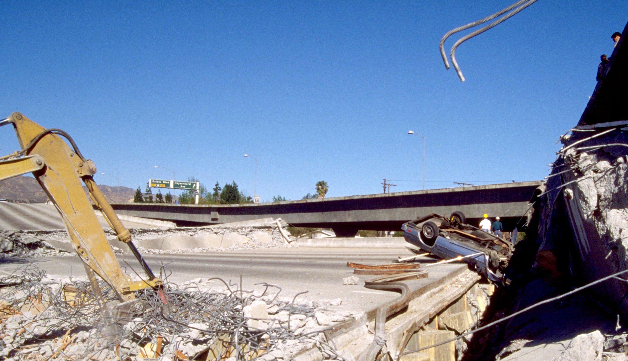 一场大地震后,南加州高速公路的一段路段已成废墟。图片来源:美国地质调查局