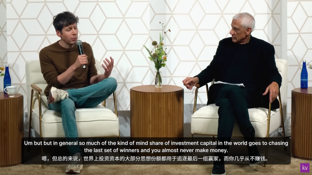 在本次采访中,奥特曼坦言,如果他是投资者,他现在不会再花任何时间去思考如何投资到另一个OpenAI,而会把全部精力都用来思考下一代会出现的新领域。