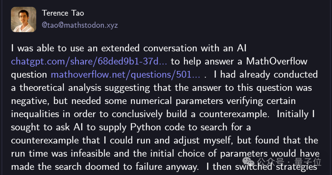 当然,跳出数学领域,陶哲轩的打样无疑也在告诉我们:如何用AI相当关键。