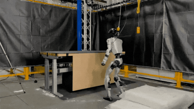 你见过这样的“盲眼”机器人demo吗?它在完全看不见的情况下——没有摄像头、雷达或任何感知单元——主动搬起9斤重的椅子,爬上1米高的桌子,然后翻跟头跳下。