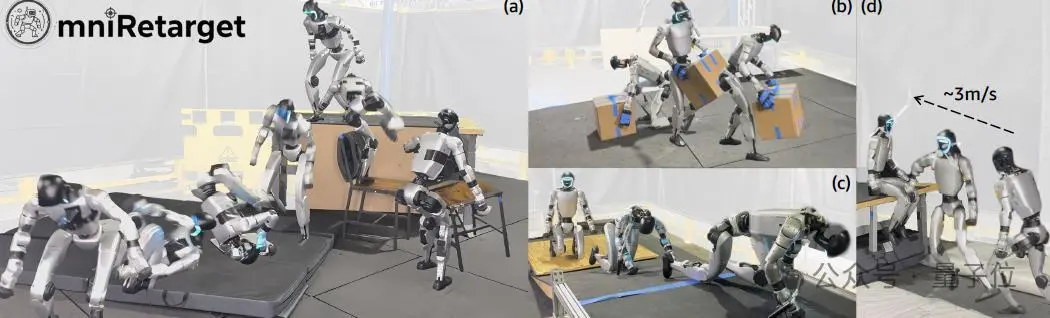 正如我们开头所展示的,搭载OmniRetarget的宇树G1实现了一个类似波士顿动力的跑酷动作。