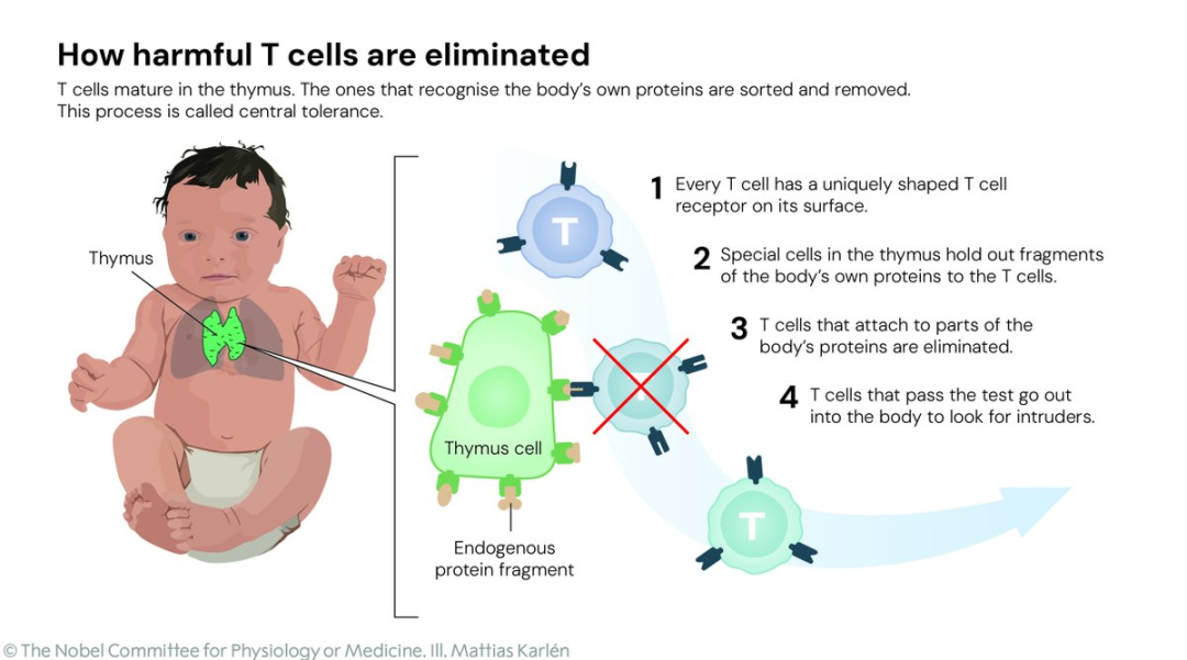 「他们的发现对我们理解免疫系统如何运作,以及为什么我们并非人人都会患上严重的自身免疫性疾病,起到了决定性作用。」诺贝尔委员会主席Olle Kämpe说道。