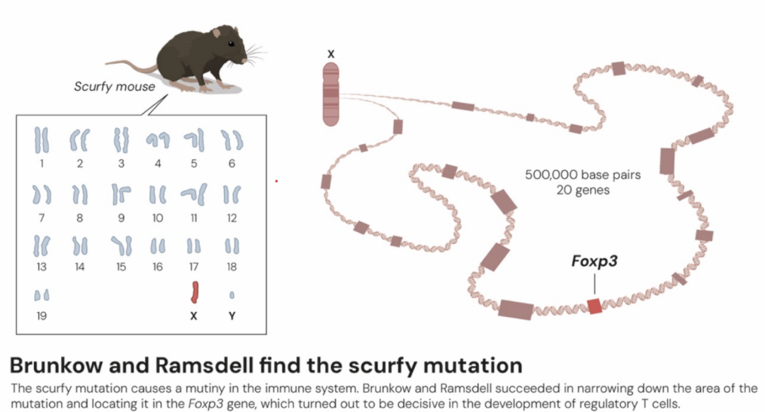 Mary Brunkow和Fred Ramsdell在2001年做出了另一项关键发现,解释了为什么某一小鼠品系对自身免疫性疾病特别易感。他们发现这些小鼠在一个基因上有突变,这个基因被他们命名为Foxp3。