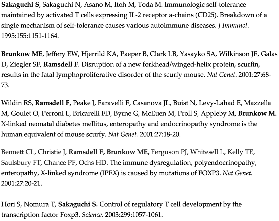 除其他项目外,他还领导团队发现并鉴定了FoxP3,该基因对调节性T细胞的功能至关重要。