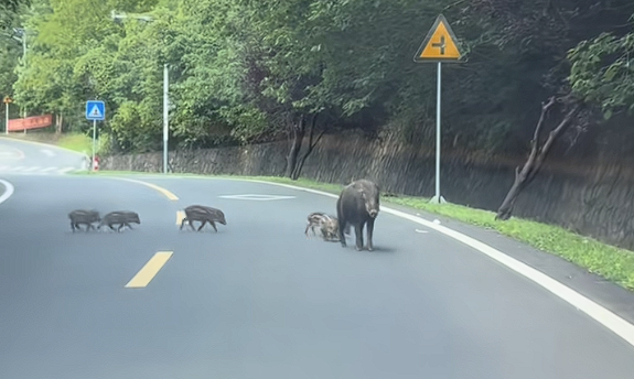 值得一提的是,同样是在当天,另有网友驾车出高速走在匝道上时,也遇到了一群野猪,好在车速较慢,加上开了远光灯,这才没有发生碰撞。