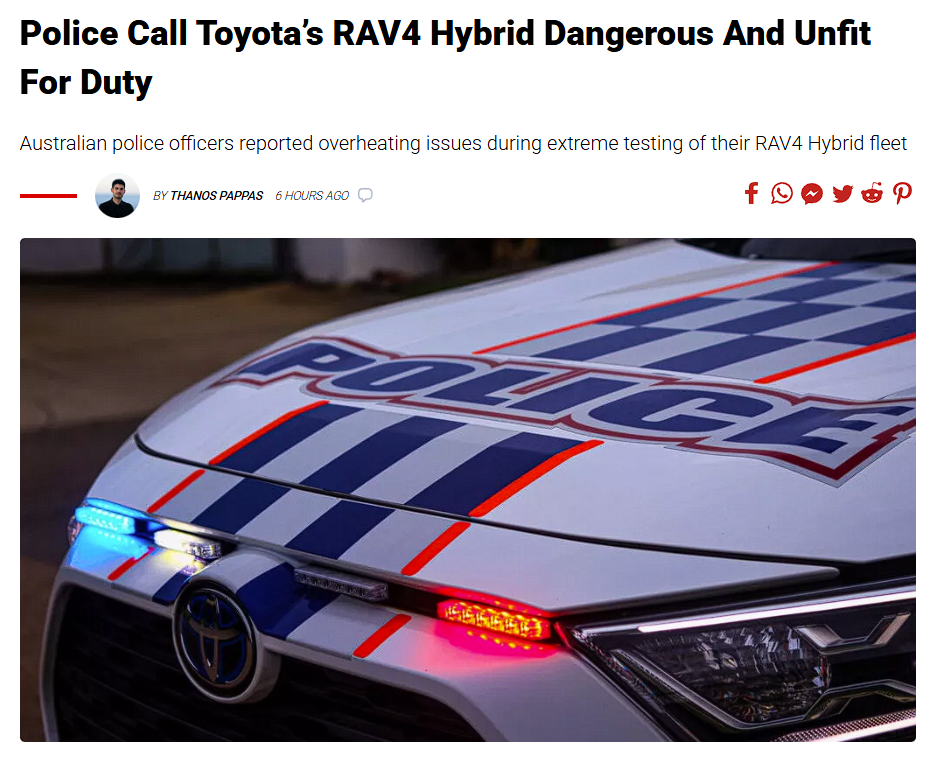 澳大利亚一警局400辆丰田RAV4训练时出现电池过热问题