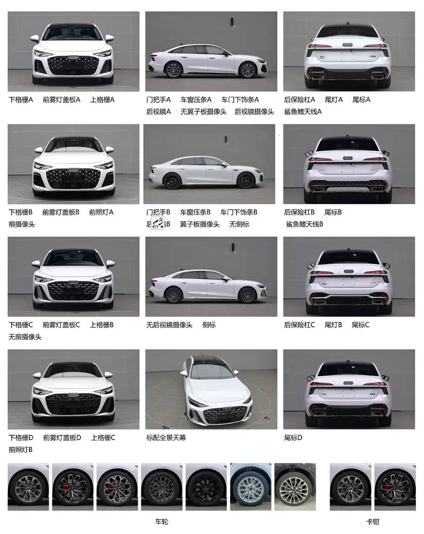 全新一代奥迪A6L申报图亮相:车身继续加长 外观风格大变