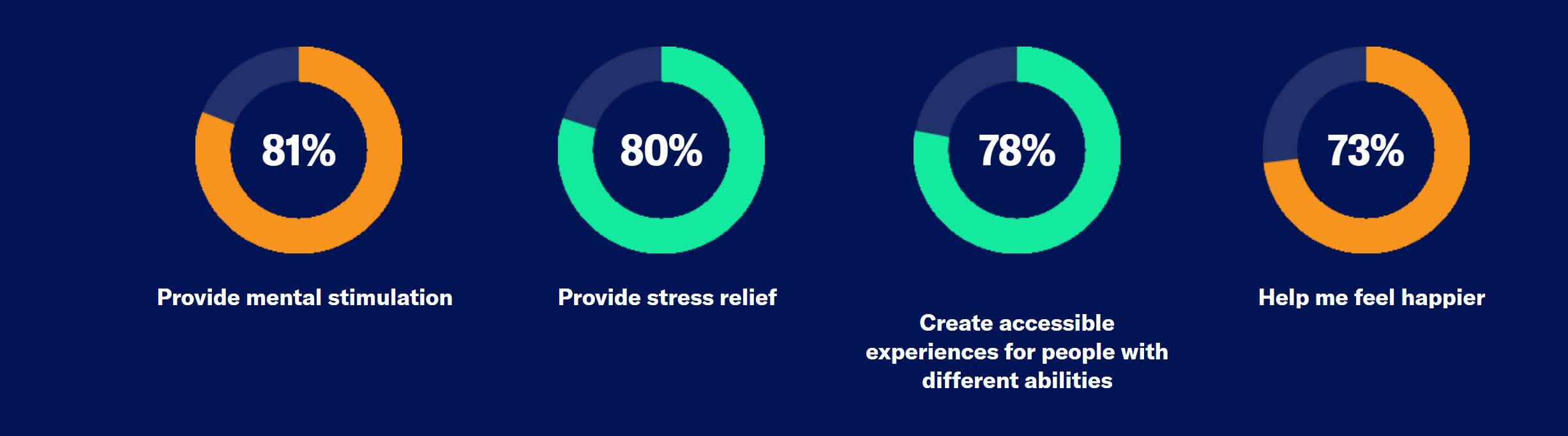 报告还指出,绝大多数人认可游戏带来的益处:81%认为能激发思维、80%认同游戏可释放压力;72%表示游戏帮助他们应对日常挑战,71%通过游戏结识新朋友或建立新的关系,70%认为能够缓解焦虑,而64%则称游戏能帮助他们减少孤独感、建立社会联系。