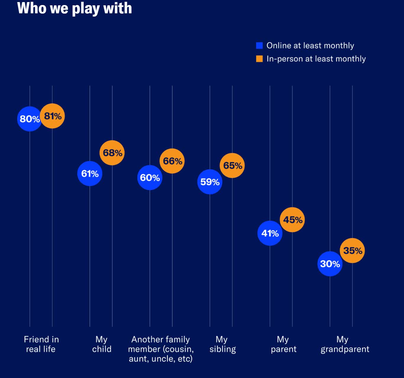 16至35岁年龄段的玩家中,有67%表示曾经通过游戏结识过亲密的朋友或伴侣。美国受访者中,近半人认为游戏有助于改善亲子关系,这与“孩子因玩游戏疏远父母”的传统观点形成鲜明对比。
