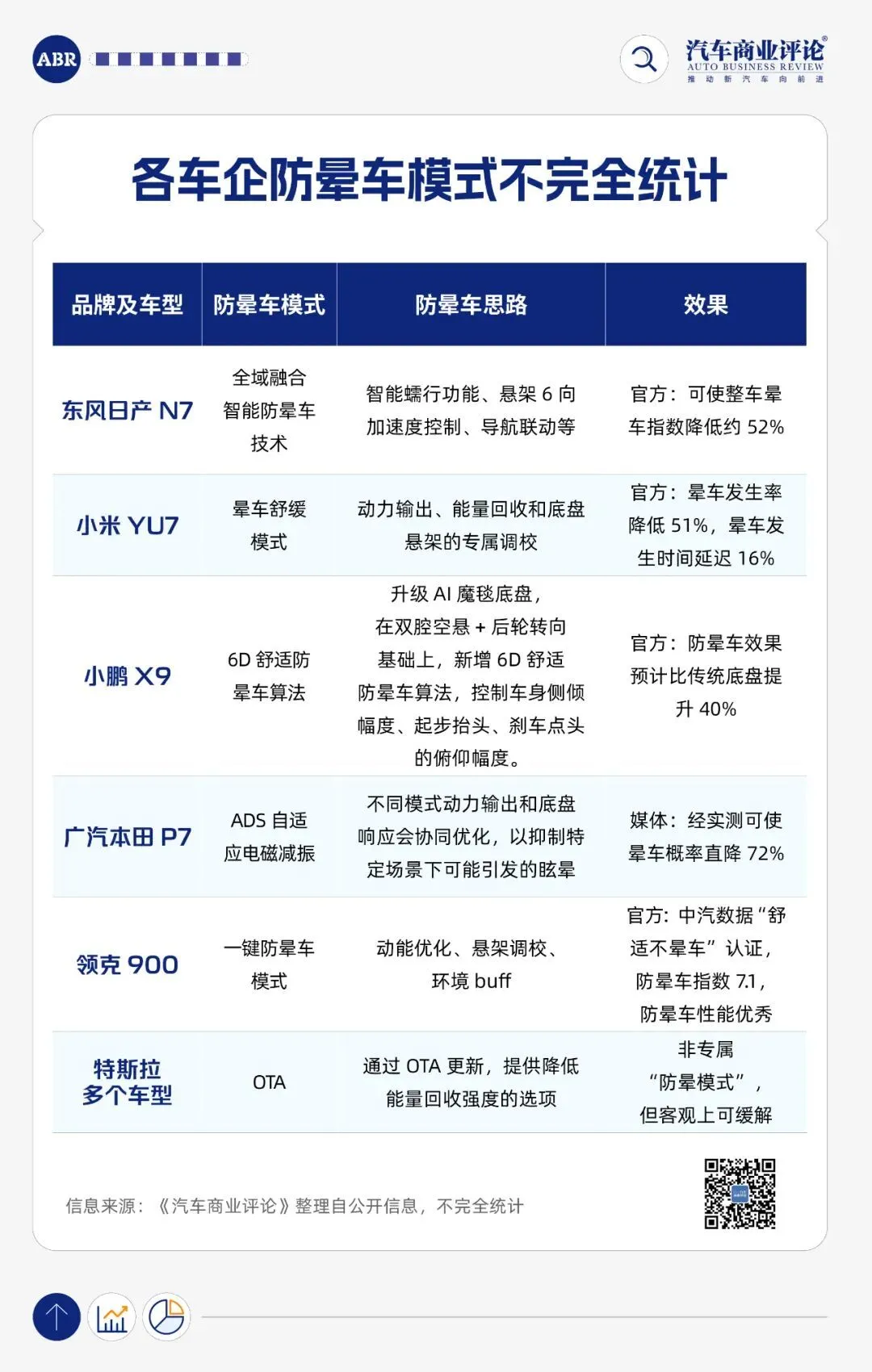 以下是《汽车商业评论》根据公开信息不完全统计的各家车企推出的防晕车模式汇总: