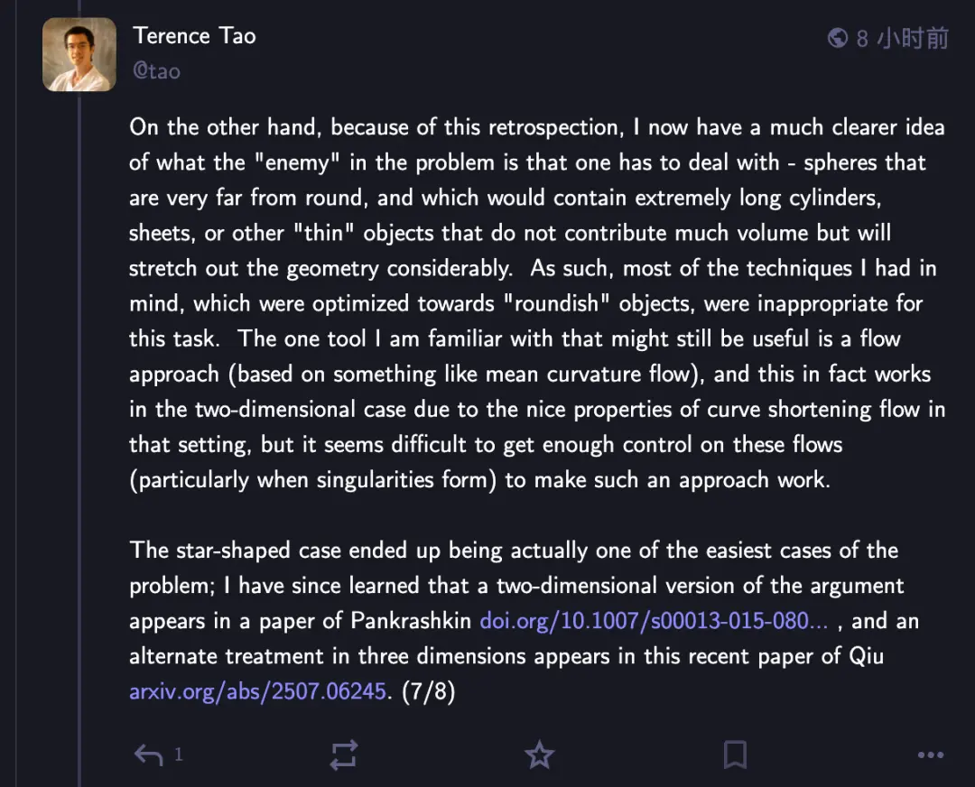 虽然解题告一段落,但陶哲轩的思考还在继续。