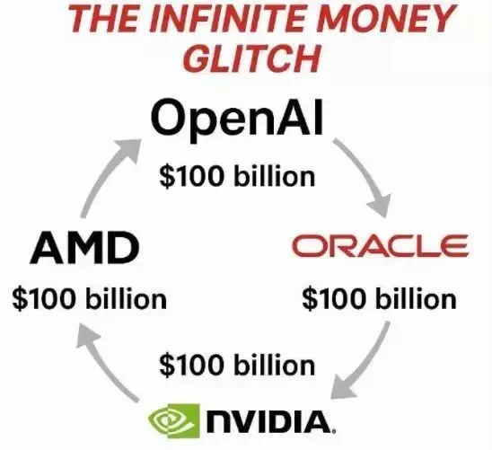 最近,这张图在科技圈非常火,再次引发“AI泡沫”的讨论。大家发现,原来OpenAI、英伟达、AMD以及Oracle之间,存在这么一个互相投资,互相购买服务的套娃结构。这家说投资千亿,那家说拿到千亿订单,就是一笔钱在圈子里转?