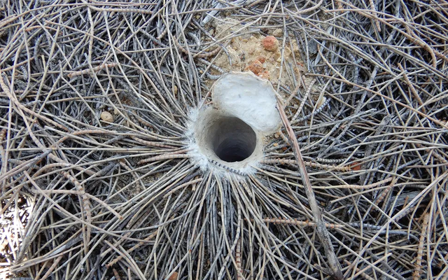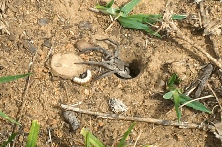 雌性蜘蛛一旦挖掘好洞穴,就不会离开,会终身居住在这里,就算自己的洞穴损坏或者坍塌,它也会想办法修复(雄蛛成年后,会主动去雌蛛洞穴寻找伴侣进行繁殖)。