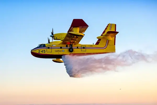 该飞机能从深度仅有1.5米的小河沟中汲水,每5分钟便可以往返一次火场。本次被撞的CL-415产权属于加拿大魁北克政府,当时正在援助美国加州。