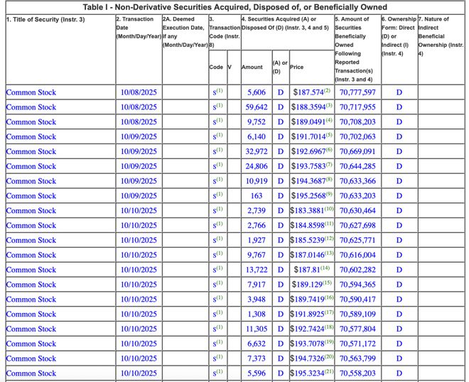 截至2025年10月10日,黄仁勋仍持有超过7060万股英伟达股票。