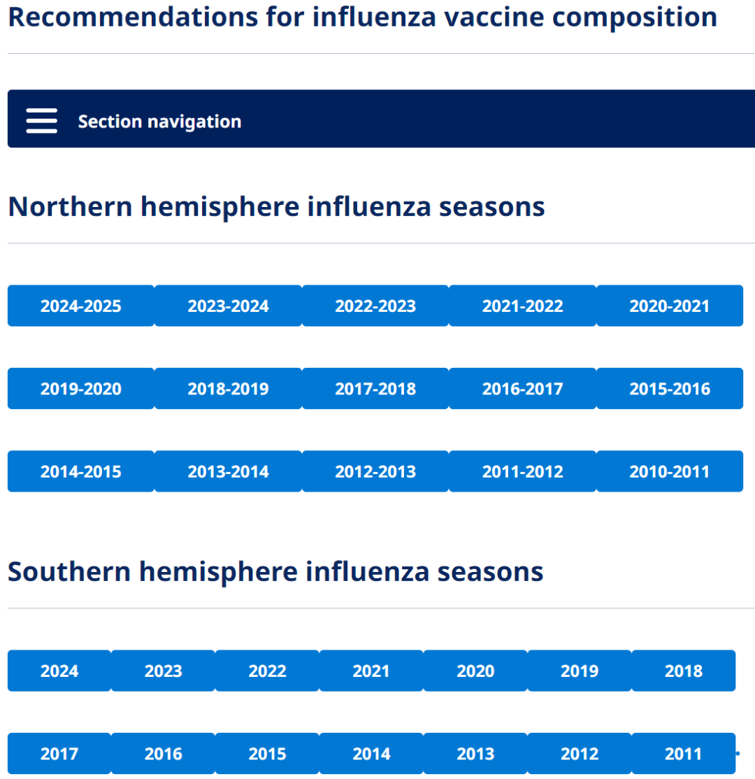 每年接种流感疫苗是预防流感的有效手段。为了应对不断变异的流感病毒,世界卫生组织(WHO)每年会根据病毒的变异情况更新疫苗组分(个别年份也可能不更新),疫苗生产企业也会采用 WHO 提供的最新毒株制备流感疫苗。