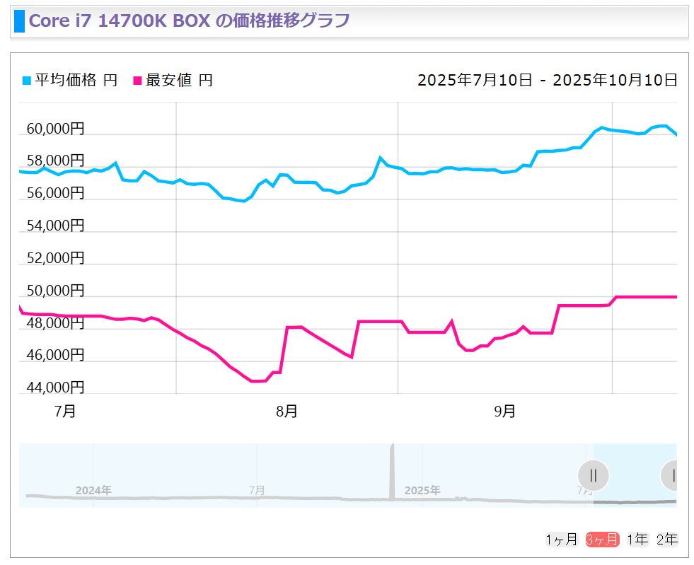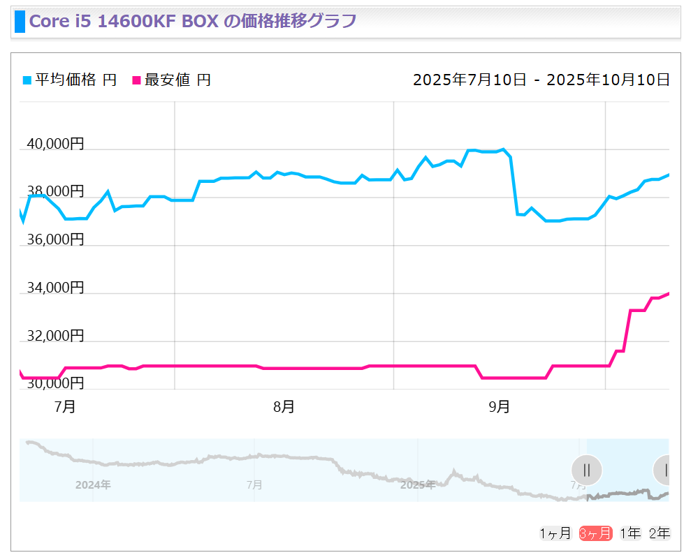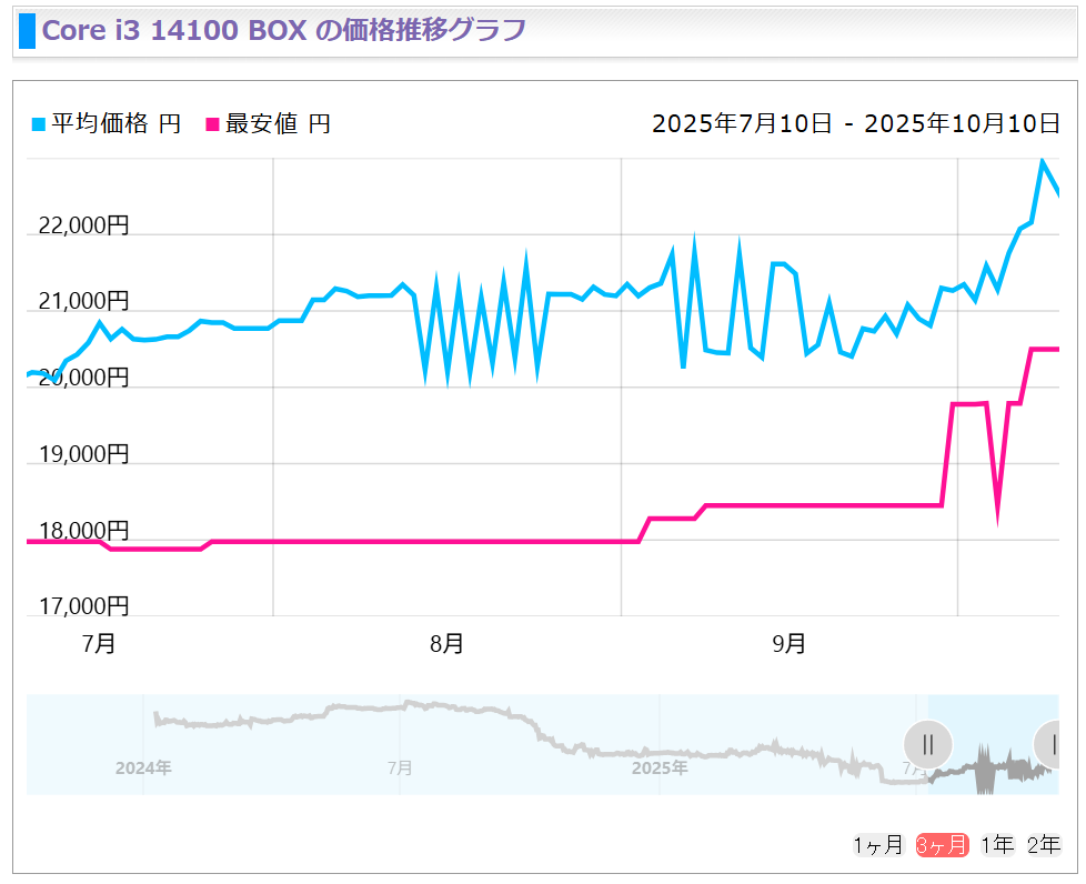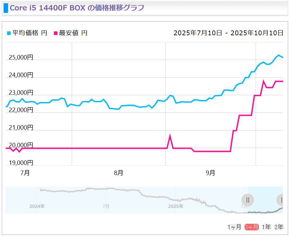 其中酷睿i5-14400F作为14代酷睿中备受欢迎的预算型产品,其价格在9月时仅为19800日元,但在10月已经飙升至23780日元,涨幅高达20%。