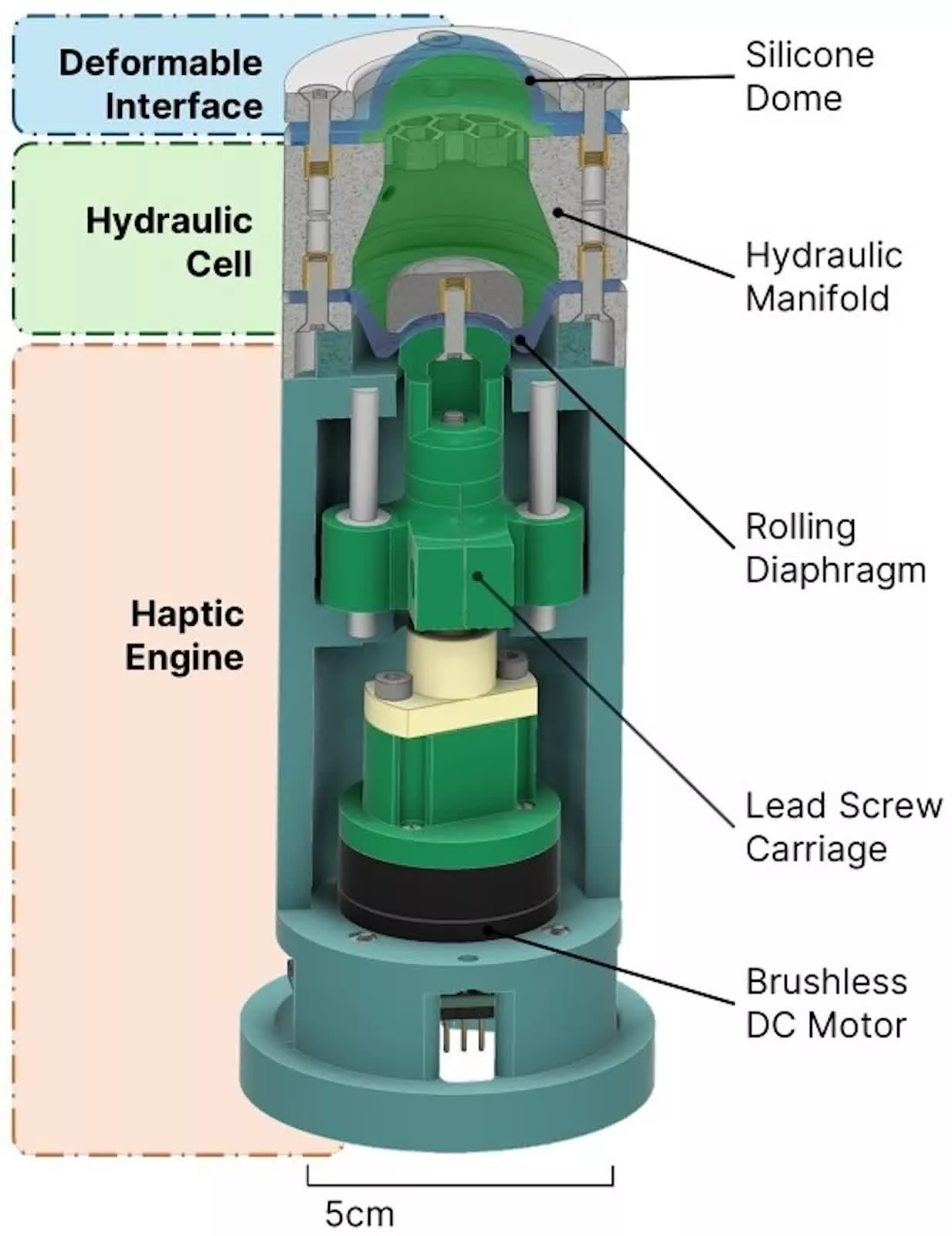 HydroHaptics由巴斯大学计算机科学系团队打造,并在全球顶级人机交互会议ACM UIST发表,获得了荣誉提名奖。该技术的核心是小型马达与密封的液体腔体,通过软性可变形材料传递触觉信号。用户在触控HydroHaptics表面时,马达会制造震动、点击或阻力变化等效果,液体腔体则保证反馈信号能均匀分布于整个表面,并且始终保持柔软与自然。