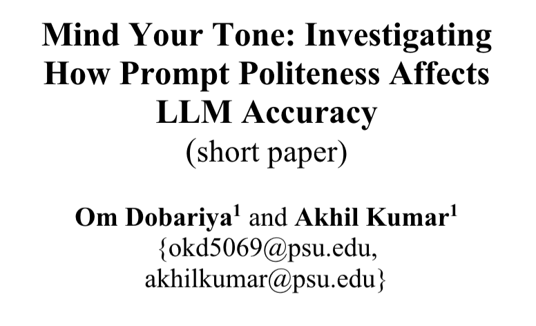 这项研究主要就是想弄清楚和AI说话的语气会不会影响它的正确率。