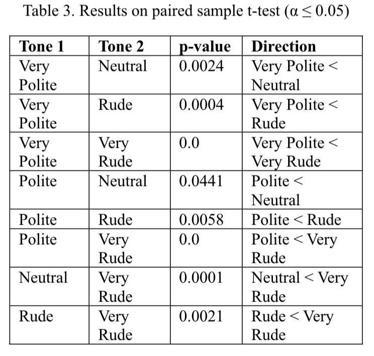 研究人员还将数据进行了统计检验,对比显著性水平之后,确认了:不同语气的正确率差异不是碰巧,是真有区别……