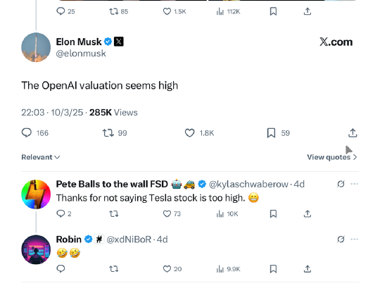 不到半年时间,OpenAI最近的估值继续增长到惊人的5000亿美元,超过马斯克的SpaceX,成为史上估值最高的创业公司。马斯克只能略有些酸溜溜地在X上评论说,OpenAI的估值过高了。