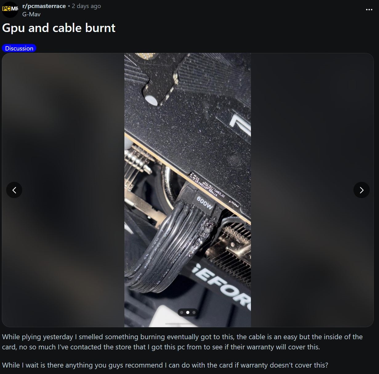 昨天刚说华擎和蓝宝石配备12V-2x6 16针供电接口的RX 9070 XT都出现了烧毁,但毕竟这么做的A卡很少,N卡就很常见了,常见到了变态的程度。过去48个小时内,仅仅是在Reddit论坛上,就有四位网友发帖称自己的RTX 5090 16针供电接口/电源线烧毁了。