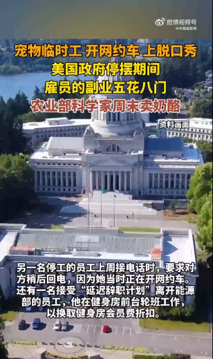 美政府停摆雇员副业五花八门:有人开网约车 有人当宠物临时工 还有农业部科学家周末卖奶酪