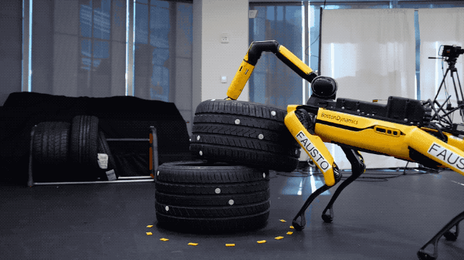 机器狗搬轮胎,“五只腿”齐发力!在波士顿动力人工智能研究所的最新方法——结合采样与学习的动态全身操作中,波士顿动力的机器狗Spot最快仅用3.7秒就能搬起轮胎。
