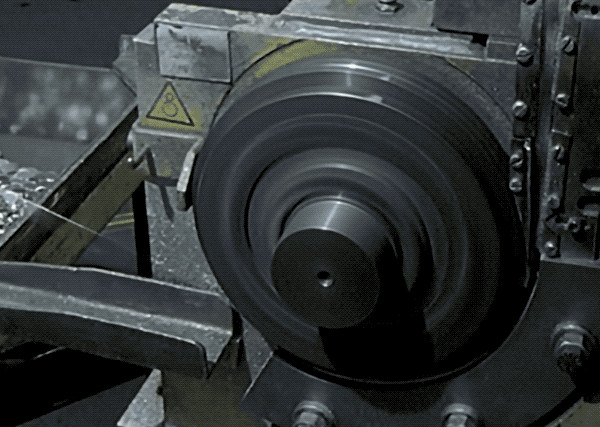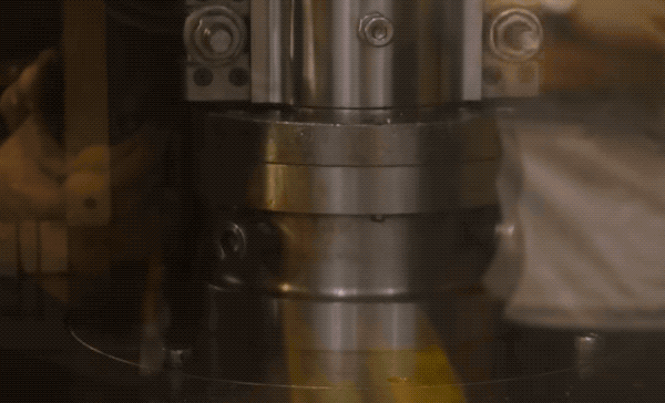 即便是机器操作,也并非一蹴而就。压槽机的圆周路径里,凸出的那部分会是一个缓慢升高的斜坡,方便内芯循序渐进地压出凹槽。