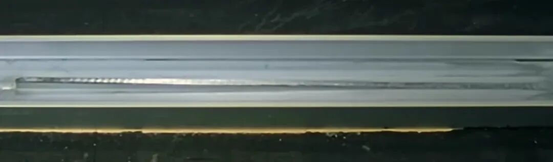 而给内芯小饼坯压出凹槽的原理,如下方的简化左视图所示。值得注意的是,工厂里本来是弯道的,这里简化成了直道,不妨碍我们理解原理。