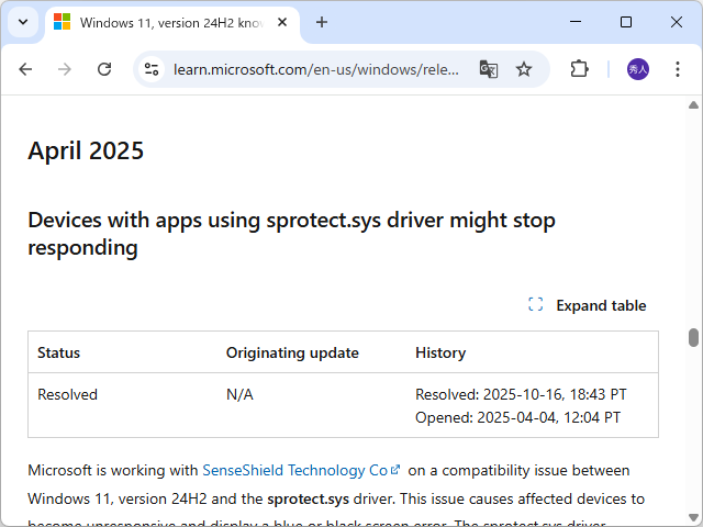 问题根源在于SenseShield sprotect.sys驱动程序。该驱动负责加密保护,但却引发了上述兼容性故障。微软确认,这一名为ID 56318982的问题目前已经解决,相应的升级阻止措施也已解除。