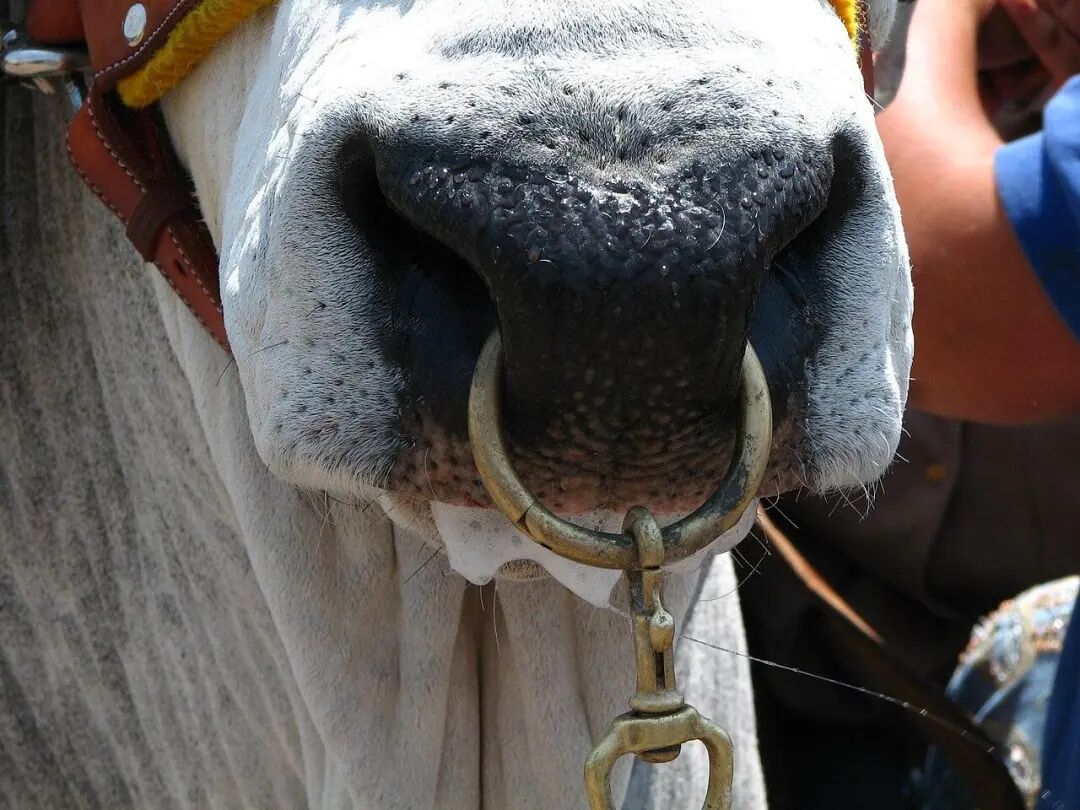 相对来说,公牛是更加危险的,所以被戴上鼻环的大多时候都是公牛,母牛则相对温顺,很多时候并不会被戴上鼻环。