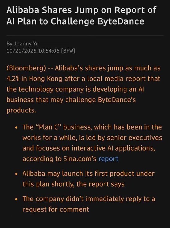彭博社:阿里巴巴港股涨逾4% 夸克“C计划”挑战字节豆包