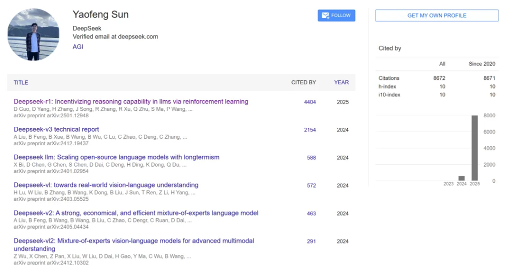 Yaofeng Sun,从去年开始就陆续参与DeepSeek多款模型研发,包括R1、V3中都有他的身影。