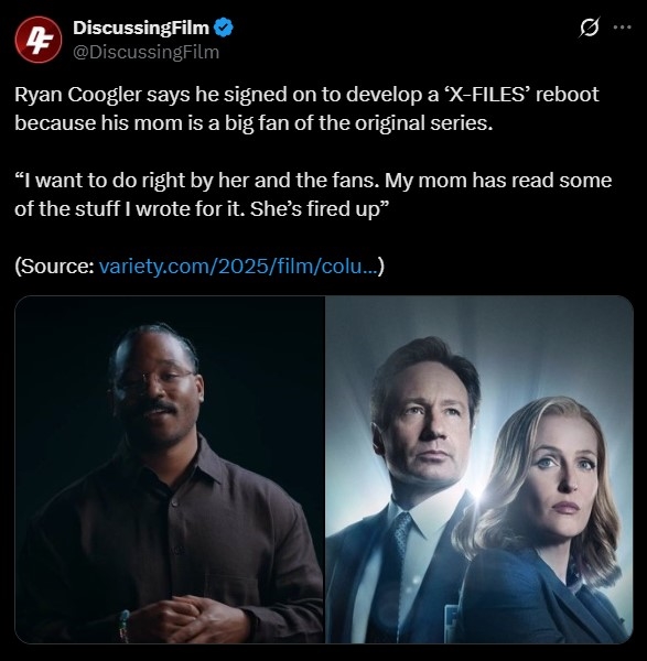 另外,福克斯电视台的流行剧集《X档案》也准备重启,执导过《黑豹》与《罪人》的瑞恩·库格勒正在操办此事。