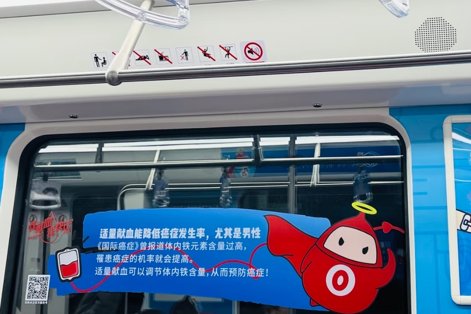 近日,长沙地铁上的一则车窗献血广告引发热议。该广告称“适量献血能降低癌症发生率,尤其是男性。适量献血可以调节体内铁含量,从而预防癌症”。