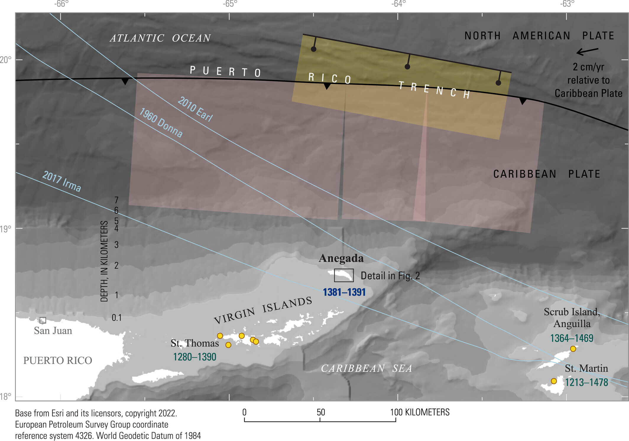 研究指出,此次海啸很可能源于波多黎各海沟的8级以上地震。该海沟距离阿内加达岛仅约100公里,是北美板块向加勒比板块下方俯冲的边界带。