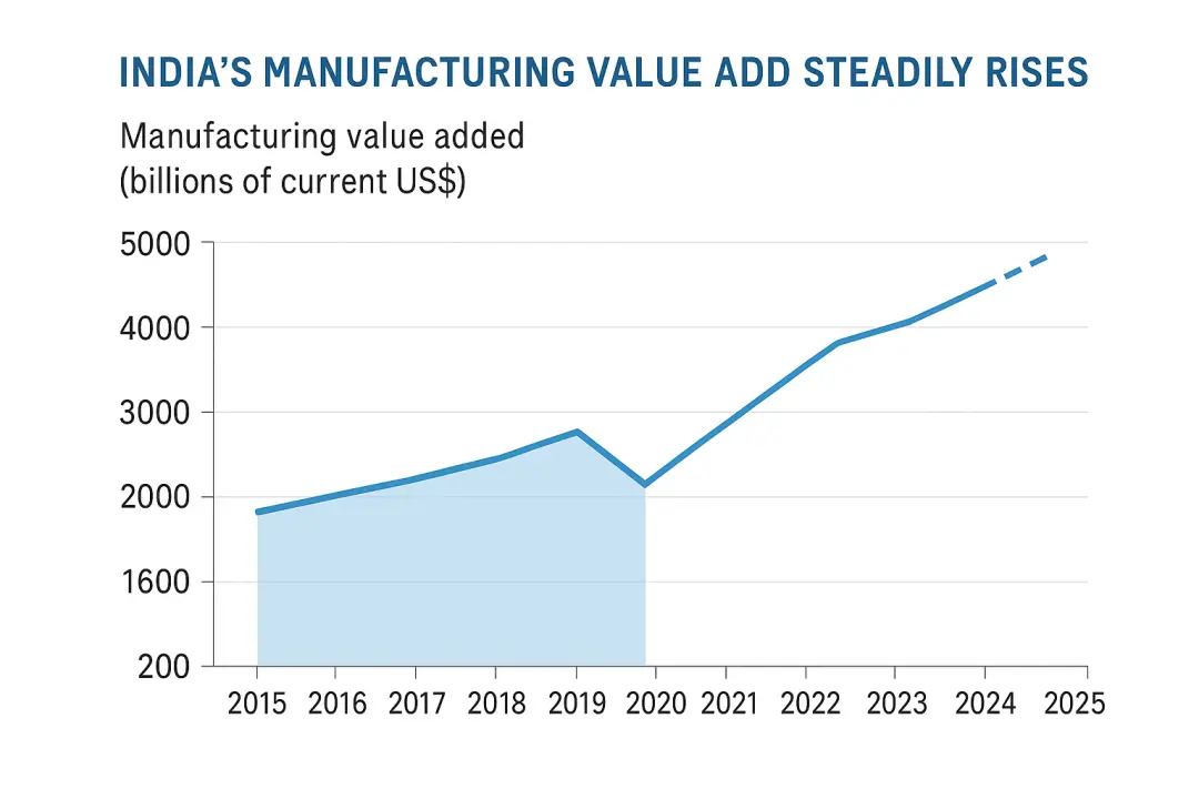 印度的经济仍以服务业与消费为主,制造业的增长虽快,却未能撬动整体结构性转型。数据上看,纵观数据,印度制造业的产出在增长、投资在扩大、出口在上升,但“制造业占GDP比重”这一指标,却在过去十年始终徘徊在15%至16%之间。