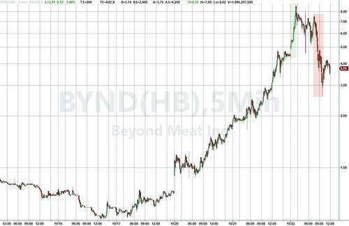 Beyond Meat单周暴涨450% 隔夜暴涨一倍再回到原地
