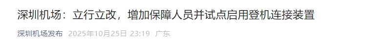 针对这次登机保障出现的不足,深圳机场联合航司立行立改,进一步完善轮椅旅客服务保障流程和措施。