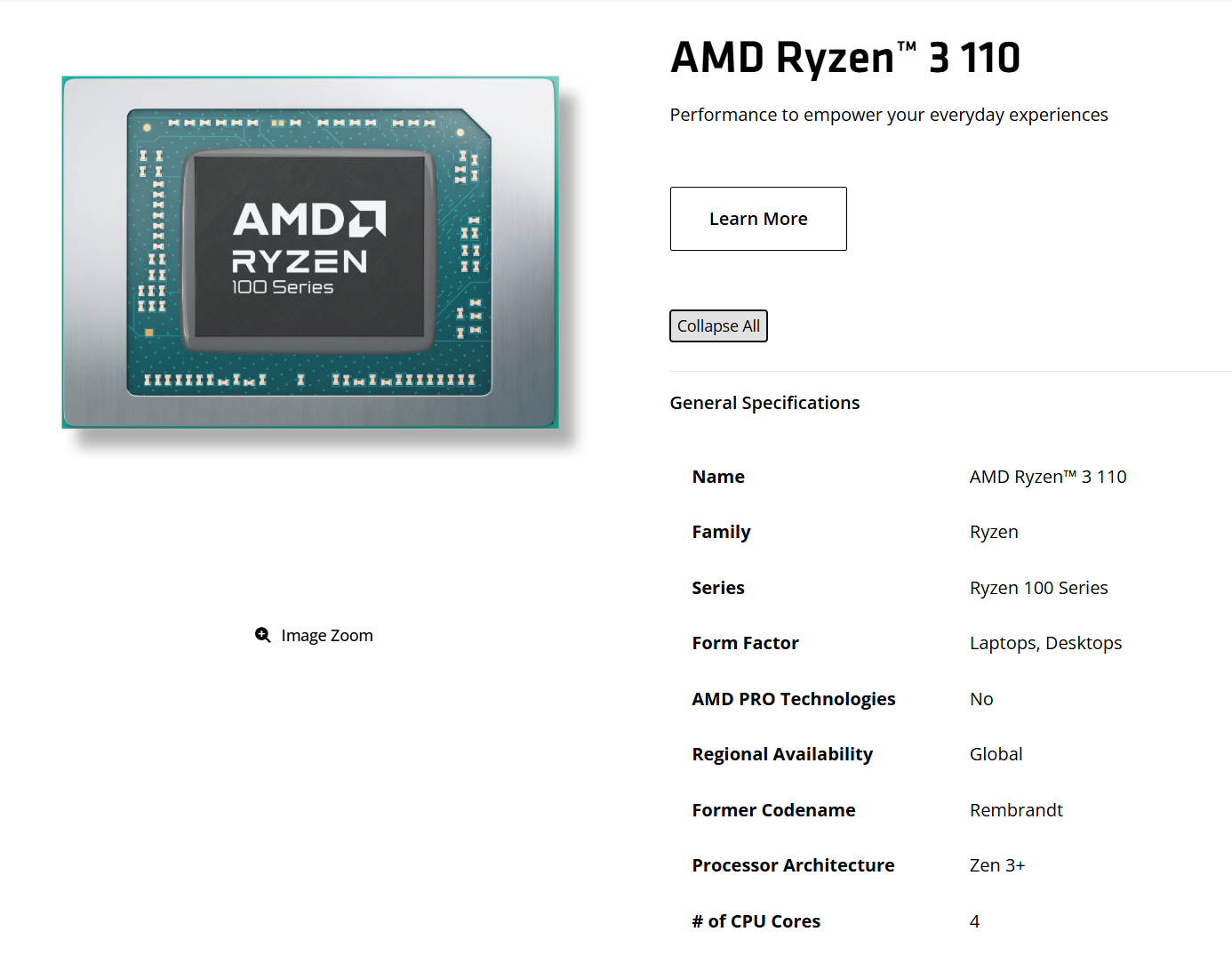 锐龙3 110:也就是锐龙5 7520U,4核心,3.0-4.3GHz频率(基础提高了200MHz),2+8MB缓存,Radeon 660M(4单元),热设计功耗15W。