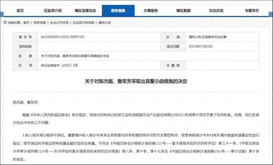 值得注意的是,因2023年审计汤姆猫项目中出现多项违规问题,中喜会计师事务所注册会计师陈杰超和鲁军芳于2025年1月被陕西证监局出具警示函,具体问题包括收入相关审计程序不到位、函证程序执行不到位,以及复核集团组成部分审计师工作程序执行不到位,内容直指境外收入的真实性。